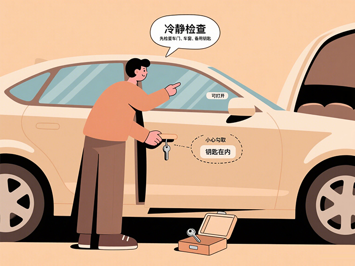 先检查车门是否真的全部锁死:有些车辆后备箱锁与车门锁联动,可能因操作失误仅锁了后备箱,车门仍可打开(尤其老式机械锁车辆)。尝试拉一下车门把手,或用遥控钥匙按解锁键(即使钥匙在车内,部分车型遥控近距离仍能触发解锁)。