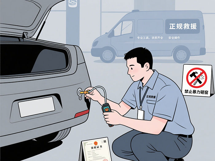 拨打车辆品牌官方救援电话,说明情况(车辆型号、位置、钥匙锁在后备箱),售后会安排专业人员携带工具到场,通过正规技术解锁(如机械锁芯应急开启、电子系统临时解锁),安全性高,但可能产生救援费(部分品牌质保期内免费)。